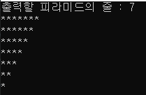 j는 0부터 i보다 작은 동안 1씩 증가하며 * 출력 j번 반복 후(별 i개)