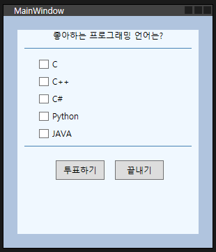 <TextBlock HorizontalAlignment="Center">좋아하는 프로그래밍 언어는?</TextBlock>