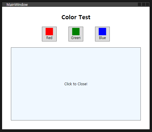 각 버튼을 표시했을 때 btnColor의 색을 변경하고 close 버튼으로 window 종료