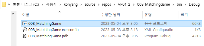 이미지 경로 : Image 폴더는 Debug 폴더 속 실행파일 위(bin) 위(008_MatchingGame) 폴더에 있음