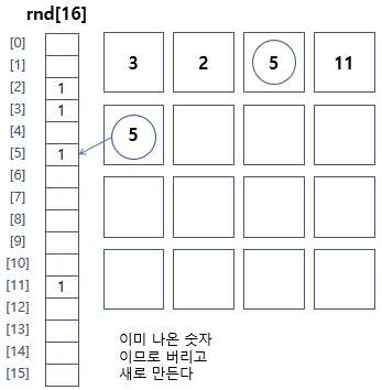 rnd[i] = 1; //rnd[i]값을 1로 변경해 중복 방지