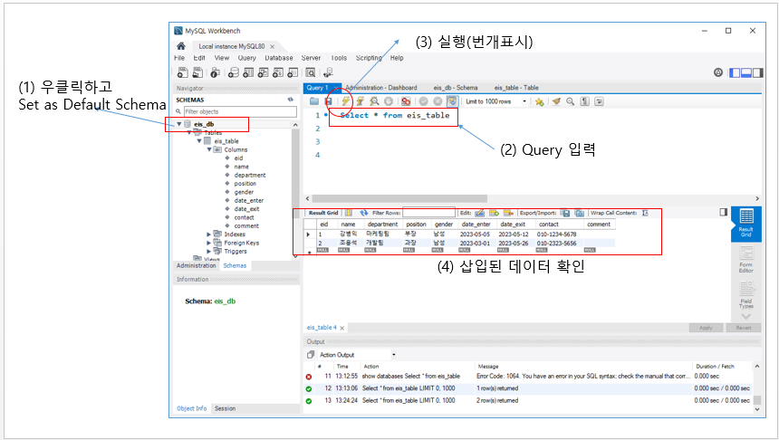 데이터베이스에 연결하고 SQL 쿼리를 실행하여 직원 정보를 추가