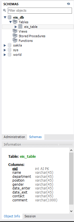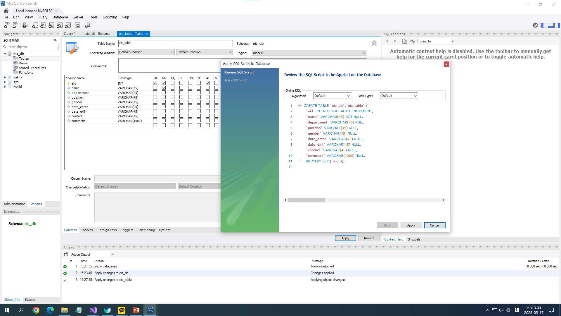 eis를 생성하고 table을 다음과 같이 추가해준다