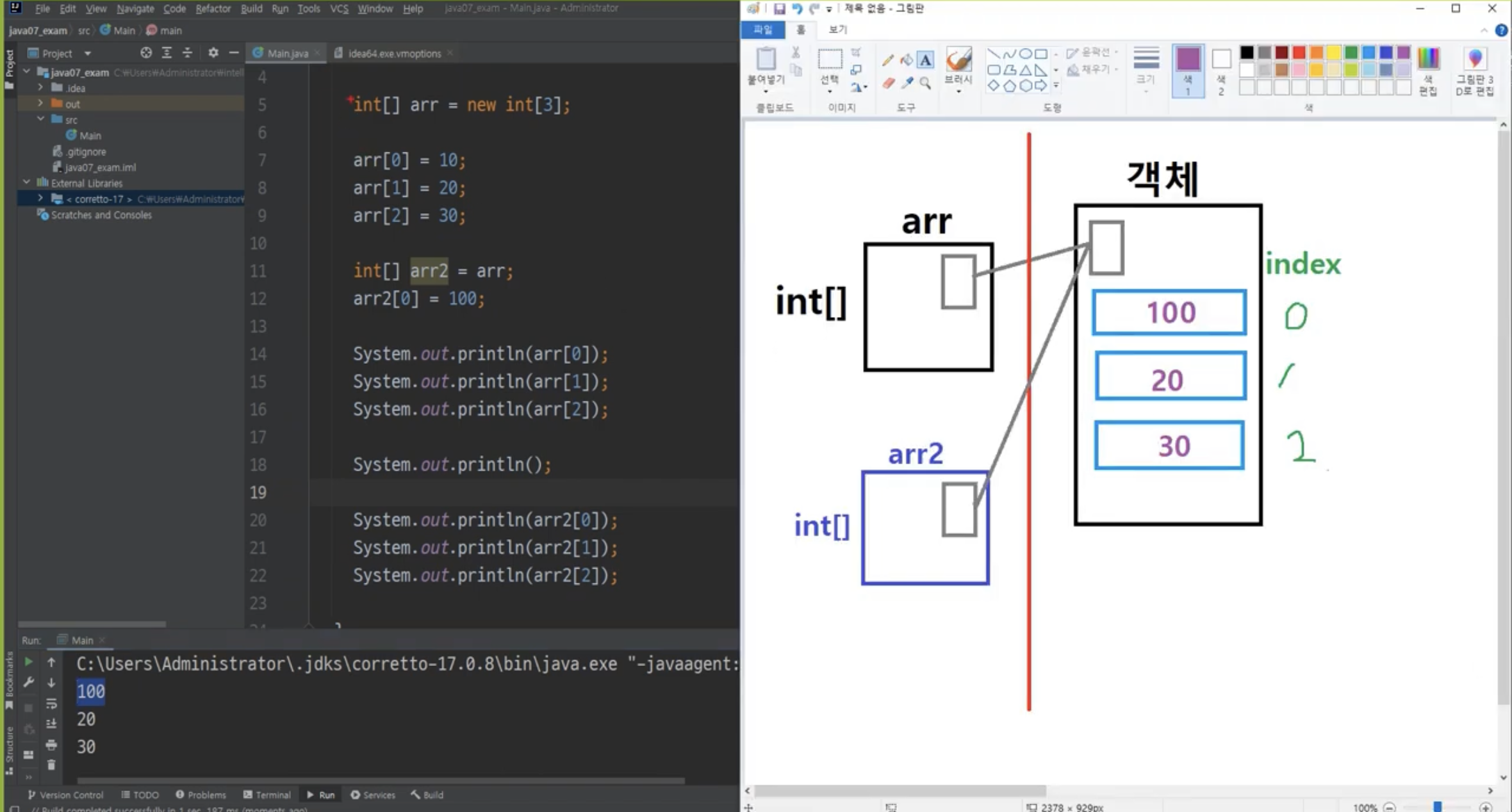 // 객체 내부의 리모콘을 복사해서 변수 arr에 넣겠다(객체랑 연결됨)