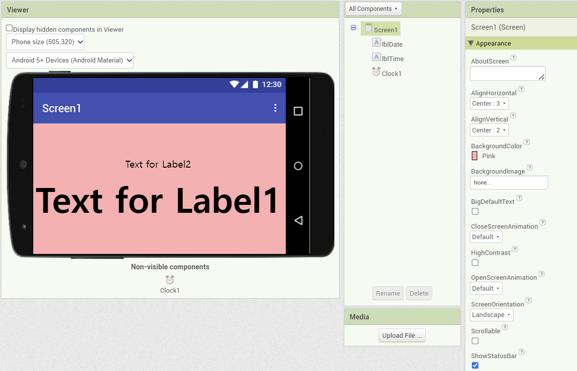 Screen1 속성 OpenScreenOrientation = Landscape > 가로화면