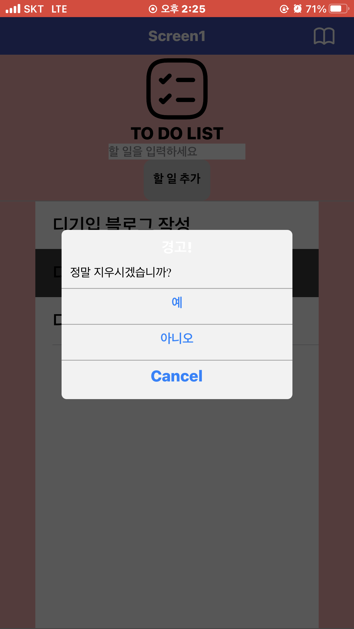 Notifier를 통해 정말 삭제할것인지 물어보는 알림창을 띄우고