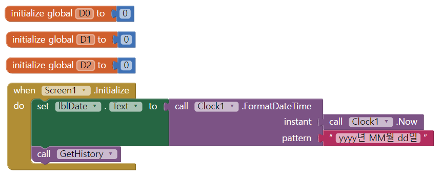 D0, D1, D2 변수를 생성한다 (오늘, 어제, 그저께 저장)
