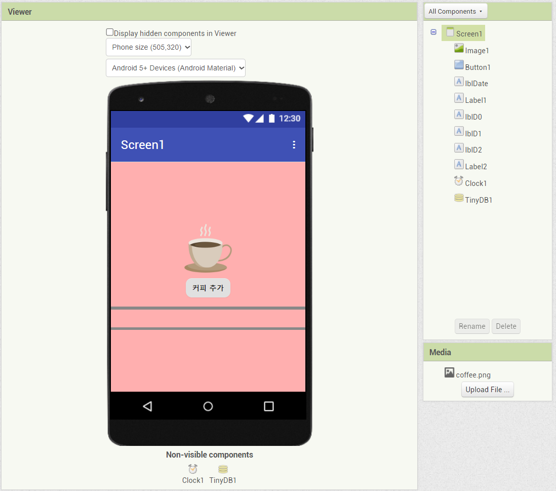 디자인은 다음과 같이 진행했고 Clock과 TinyDB를 추가했다