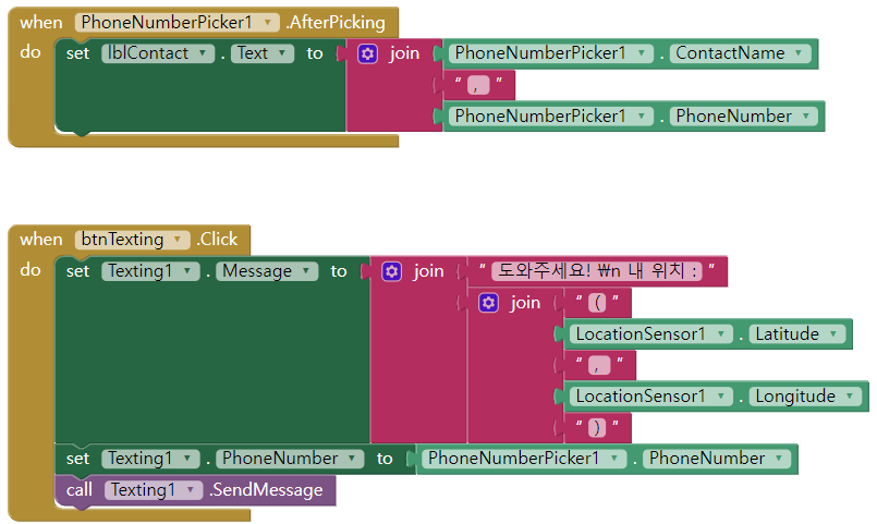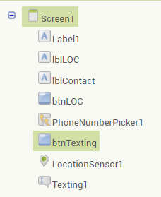Non-visible 컴포넌트에는 LocationSensor, Texting 추가