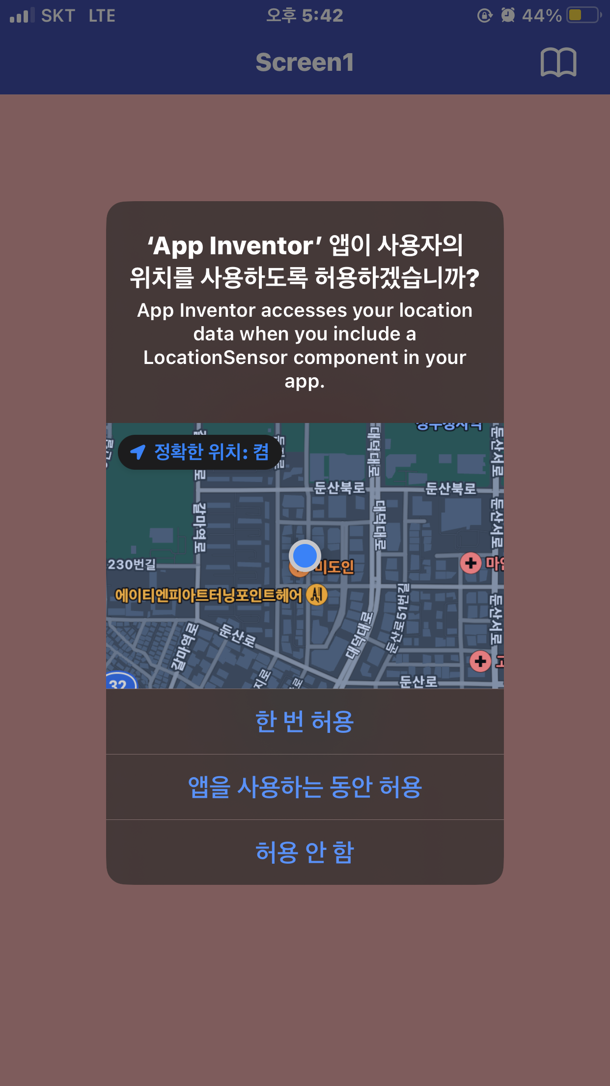 + LocationSenser.CurrentAdress가 오류가 있어 위도 경도를 표시하는 것으로 수정했다