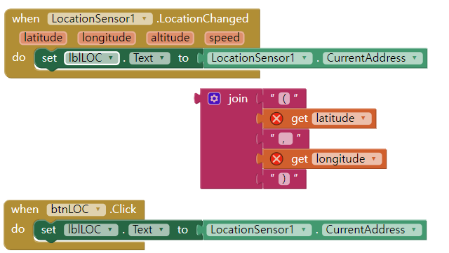 lblLOC의 Text를 Sensor의 CurrentAdress(현재주소)로 변경