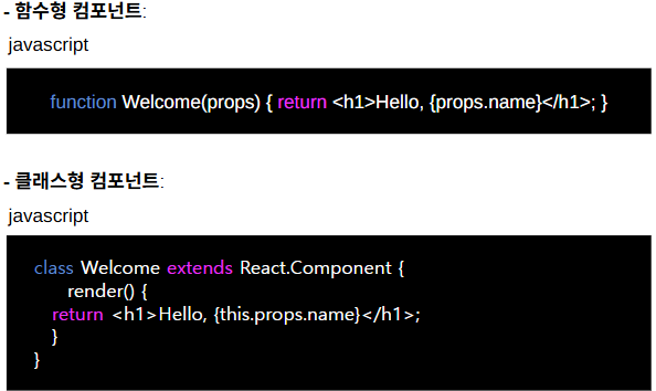 - 함수로 정의하기: Hooks 기능을 통해 state와 라이프사이클 사용가능->클래스컴포넌트와 완전 똑같이 사용은 못함
